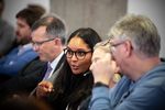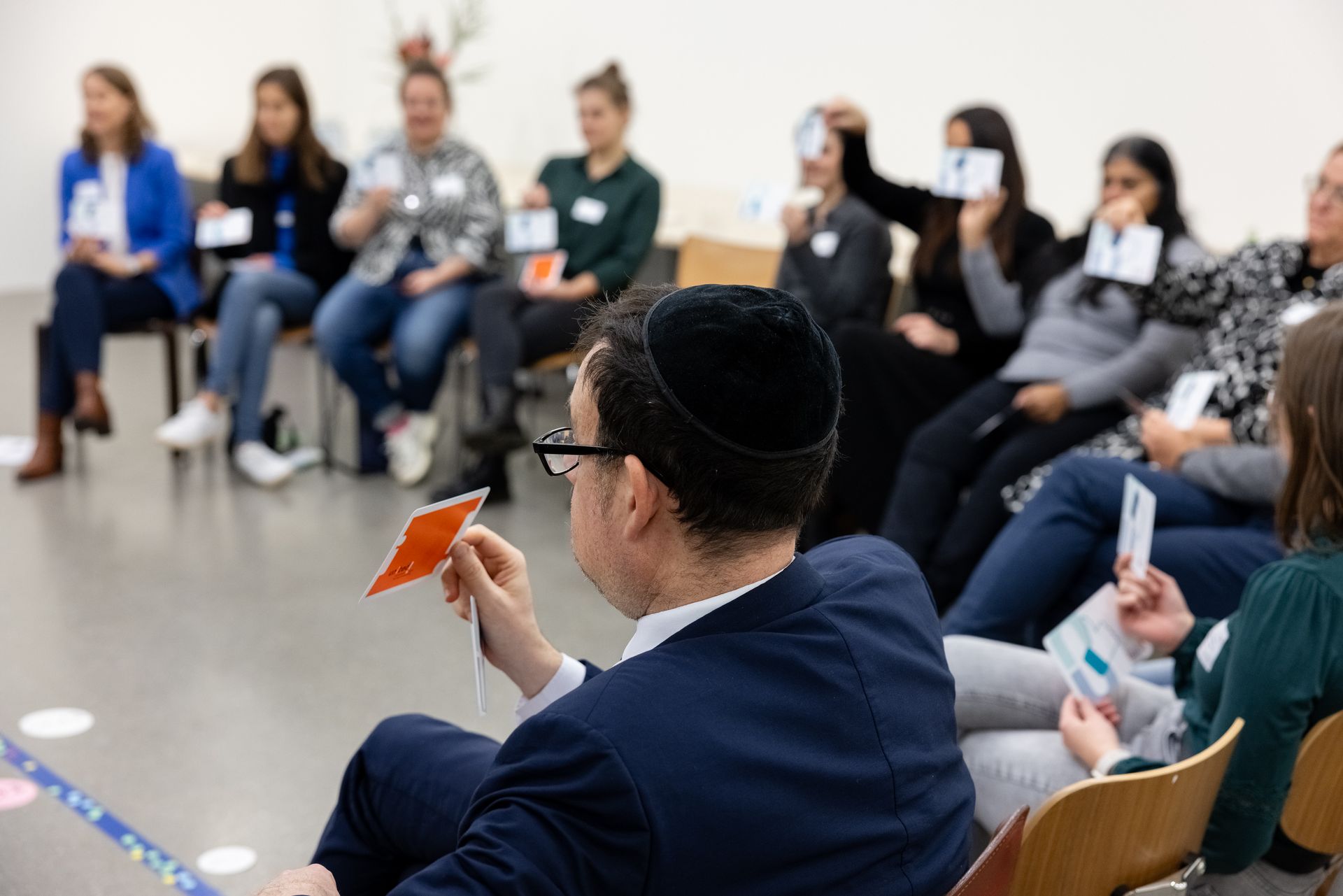 Wie sich diese etablieren lässt, war Thema der Workshops, an denen die Gäste des Netzwerktreffens teilnehmen konnten: Im Workshop des Nahostexperten und Bestsellerautoren Shai Hoffmann ging es darum, was man aus gelungenen Gesprächen über den Nahostkonflikt für Debatten in Unternehmen mitnehmen kann. Prof. Meinhard Schröder (Universität Passau) skizzierte in einem Vortrag zu "Grundlinien und Grenzen der Meinungsfreiheit" die Diskursspirale, in der sich die Gesellschaft gegenwärtig befindet. Beim Workshop von „Tadel verpflichtet! e.V.“ trainierten die Teilnehmenden konkrete Strategien, um im Arbeitskontext auf Desinformation und menschenverachtende Aussagen zu reagieren. „Gesicht Zeigen! Für ein weltoffenes Deutschland e.V.“ demonstrierten in ihrem Workshop eine Tool-Box für Respekt am Arbeitsplatz.