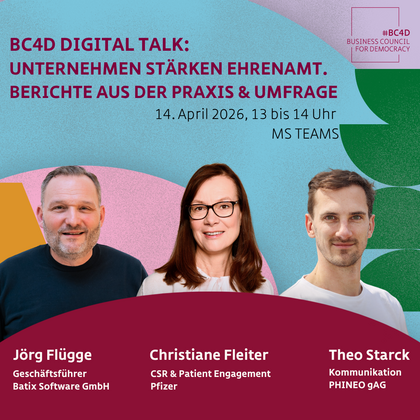BC4D Digital Talk: Unternehmen stärken Ehrenamt.