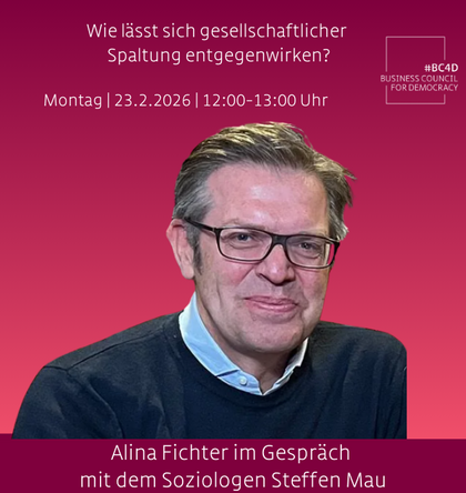 Am 23. Februar haben wir Steffen Mau online zu Gast zum Thema "Wie lässt sich gesellschaftlicher Spannung entgegenwirken?"