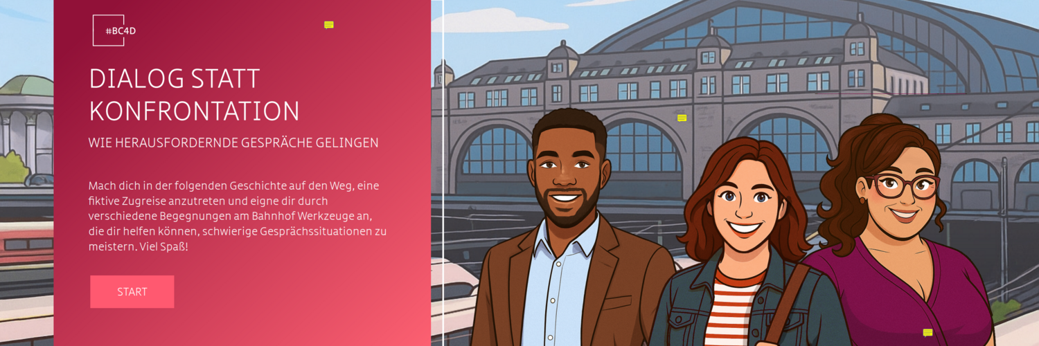 Besonders geeignet für Beschäftigte, die mit Kolleginnen und Kollegen, Kundinnen und Kunden oder im Team über gesellschaftliche Themen ins Gespräch kommen.
